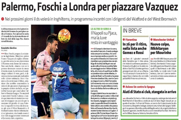 Il Palermo, per iniziare a muoversi nelle trattative di calciomercato, deve necessariamente vendere la stella della squadra Vazquez e, a tal...
