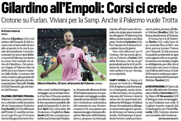 "Si attendono sviluppi anche sul fronte Gilardino, con l'Empoli pronto a farsi avanti per il bomber biellese, ancora in trattativa...