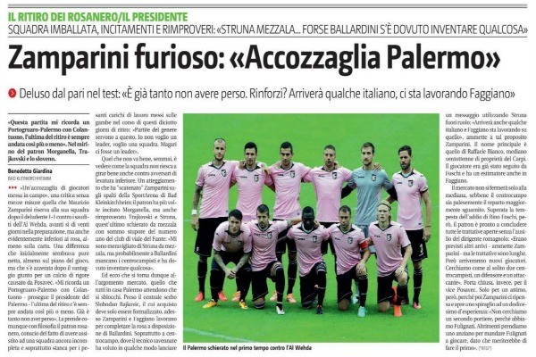 «Un'accozzaglia di giocatori messa in campo». Questa è la critica che Zamparini fa alla squadra dopo il pareggio con l'Al...