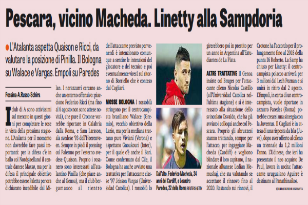 Corriere dello Sport, serie B: “Il Perugia va su Mazzotta. Intrigo Rosina: per il fantasista alla Salernitana lo scoglio rimane il contratto”