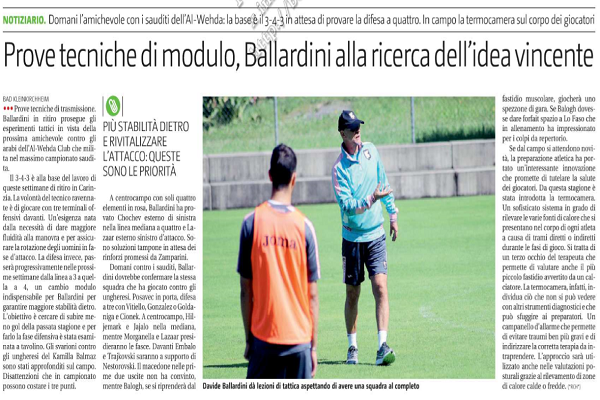 "Prove tecniche di trasmissione, Ballardini in ritiro prosegue gli esperimenti tattici in vista della prossima amichevole contro gli arabi dell'Al-Wehda...