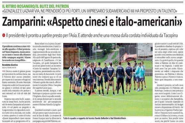"A sentire le parole di Zamparini il Palermo sta lavorando sotto traccia per rinforzare la squadra. In realtà a otto...