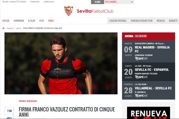 "Franco Vazquez è ora ufficialmente giocatore del Siviglia FC, che aveva raggiunto pochi giorni fa un accordo con la sua ex squadra, U.S. Città Palermo e lo...