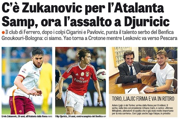 "ALTRI AFFARI L’Atalanta ha chiuso per il prestito del difensore Zukanovic (Roma), che tra oggi e domani è atteso nel...