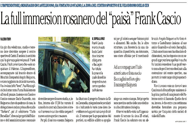 La Repubblica: “La full immersion rosanero del «Paisà» Frank Cascio. Entro una settimana l’offerta ufficiale…”
