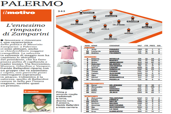 "Il primo Palermo del campionato di serie A è praticamente fatto. Tra infortunati, rosa ridotta e acquisti che non arrivano...