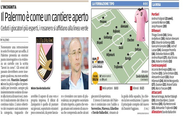 “Nonostante una retrocessione in serie B evitata per un soffio, il Palermo presenta un enorme punto interrogativo e in evidenza...