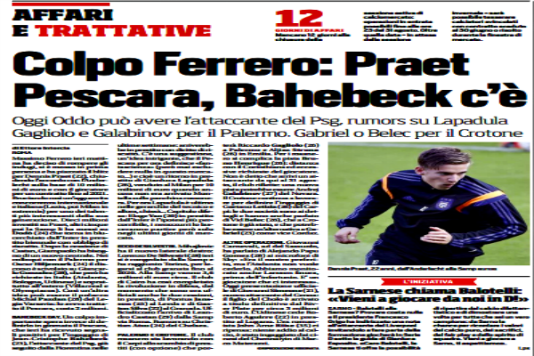 "Il Sassuolo può far scattare il giro delle punte. I neroverdi dopo Matri stanno valutando se acquistare un altro attaccante....