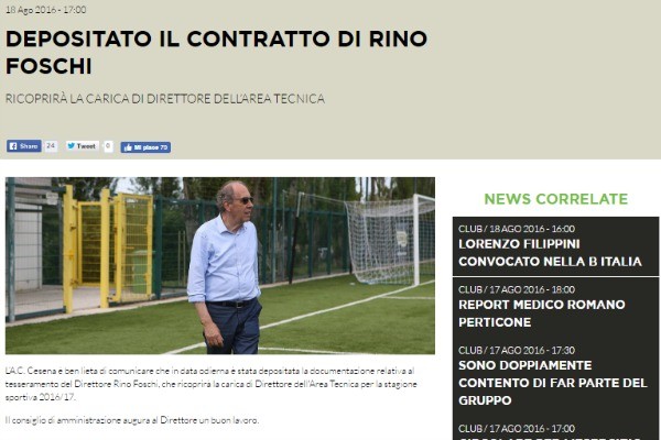 "L’A.C. Cesena è ben lieta di comunicare che in data odierna è stata depositata la documentazione relativa al tesseramento del...
