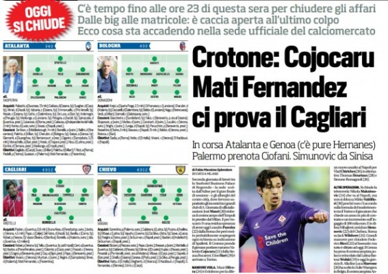 Queste le prime pagine dei principali quotidiani sportivi nazionali di oggi, mercoledì 31 agosto 2016.