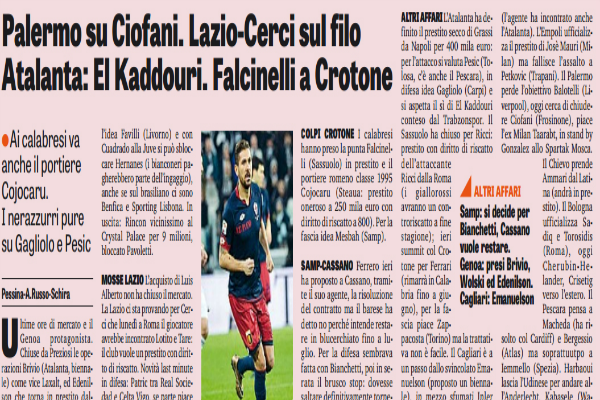"Ultime ore di mercato e il Genoa protagonista. Chiuse da Preziosi le operazioni Brivio (Atalanta, biennale) come vice Laxalt, ed...