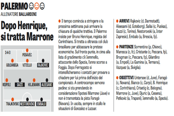 Gazzetta dello Sport: “Punto mercato: Palermo, il tempo comincia a stringere…”