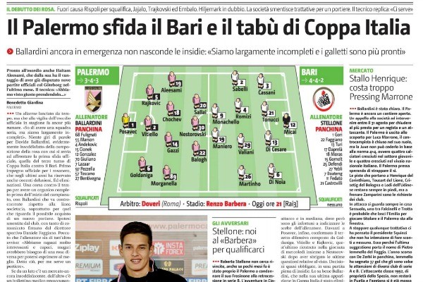 "Infortuni a catena, e siamo solo alla prima ufficiale. Sarà un Palermo a metà quello che stasera esordirà in Coppa...