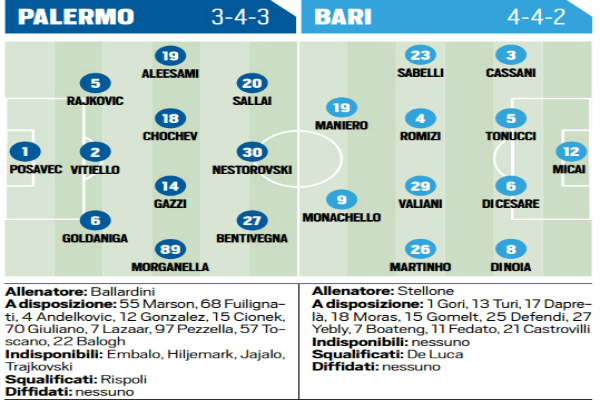 Ecco le probabili formazioni del match di questa sera tra Palermo e Bari, valido per la Tim Cup, proposte nell'edizione...