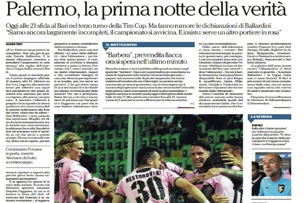 "«È un Palermo largamente incompleto». Non usa giri di parole Davide Ballardini. È lo stesso allenatore rosanero a prendere l’argomento...