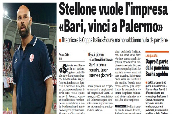 "«Stavolta non abbiamo nulla da perdere. Sappiamo che è difficile, ma vogliamo passare il turno». Roberto Stellone insegue l’impresa. Per...