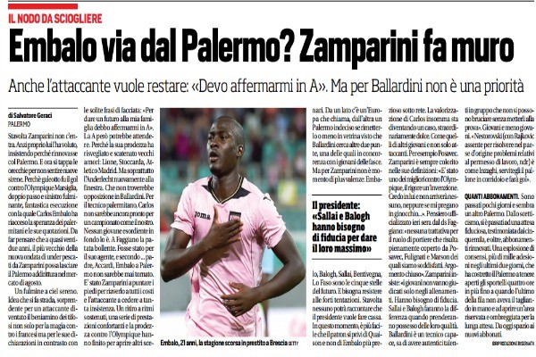 "Per Zamparini non è momento di plus valenze: Embalo, Balogh, Sallai, Bentivegna, Lo Faso sono le cinque stelle del futuro....