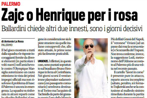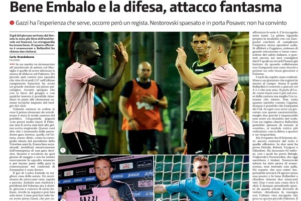 Giornale di Sicilia: “Bene Embalo e la difesa, attacco fantasma. Gazzi ha l’esperienza che serve, Posavec non ha convinto”