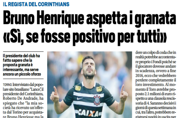 "Intervistato dal popolare sito brasiliano “Lance”, il presidente del Corinthians, Roberto De Andrade, ha spiegato che “la mia società ha...