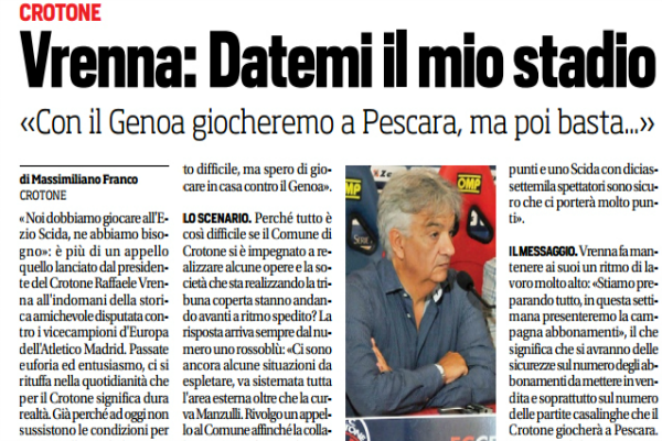 "«Noi dobbiamo giocare all'Ezio Scida, ne abbiamo bisogno»: è più di un appello quello lanciato dal presidente del Crotone Raffaele...