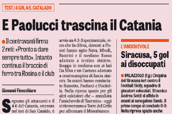 "Segnano gli attaccanti e il 40 del Catania, ottenuto nel test di San Cataldo, è un passo in avanti verso...
