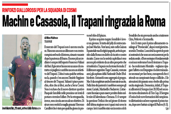 "Il mercato del Trapani non è ancora concluso. Mancano ancora un difensore e un centrocampista nel ruolo di interno, rimasto...