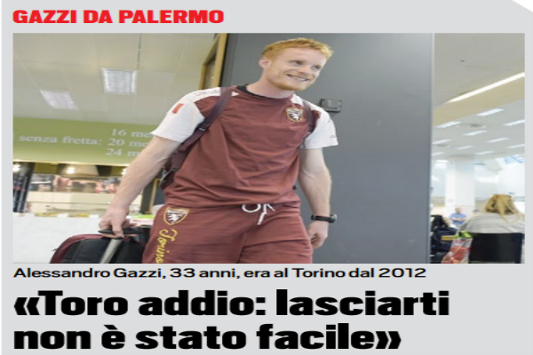 "Dopo 4 anni per 104 partite e 3 gol, Alessandro Gazzi non è più granata, ma del Palermo. Le strade...