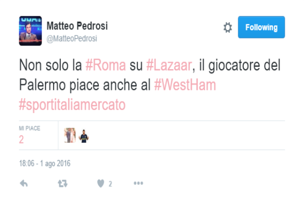 Attraverso uno stato pubblicato sul proprio profilo "Twitter", Matteo Pedrosi, esperto di calciomercato, scrive che sul terzino sinistro del Palermo Achraf...