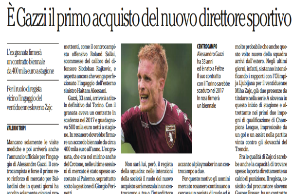 "Mancano solamente le visite mediche e poi arriverà anche l’annuncio ufficiale per l’ingaggio di Alessandro Gazzi. Il centrocampista è forse...