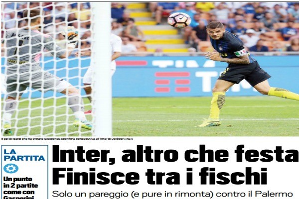 L'edizione odierna di "Tuttosport" ha stilato le pagelle dei rosanero dopo il match pareggiato contro l'Inter. Di seguito le valutazione...