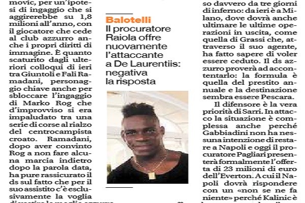 L'edizione odierna de "Il Mattino" di Napoli riporta che nelle ultime ore, Mino Raiola ha provato a risolvere il problema...