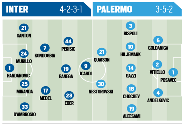 L'edizione odierna di "Tuttosport" ha stilato le probabili formazioni del match in programma oggi alle 18 tra Inter e Palermo....