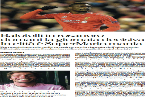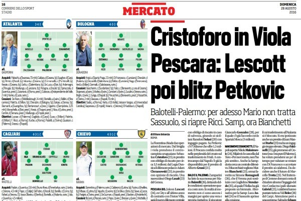 Corriere dello Sport, calciomercato serie A: “Balotelli-Palermo: per adesso Mario non tratta. Gonzalez spinge per restare? Pescara: Lescott poi blitz Petkovic”