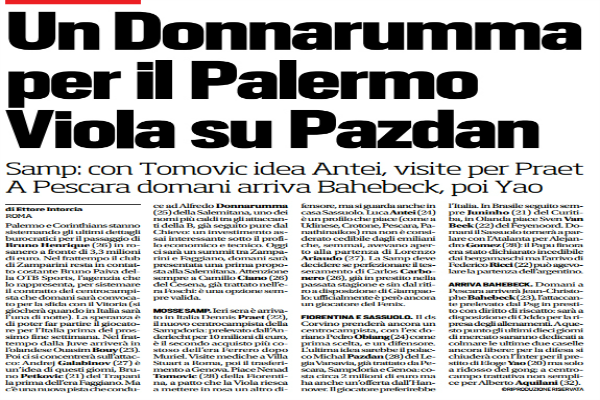 Intervenuto ai microfoni de "La Gazzetta dello Sport" Maurizio Zamparini si è così espresso in merito al mercato del Palermo:...