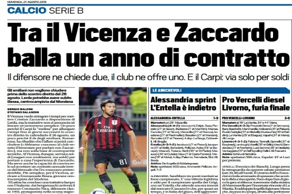 "Il Vicenza vuole stringere i tempi per mettere Cristian Zaccardo a disposizione di Lerda, ma la trattative non si annuncia...