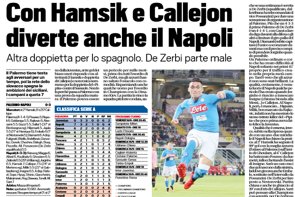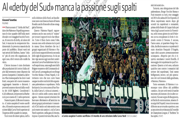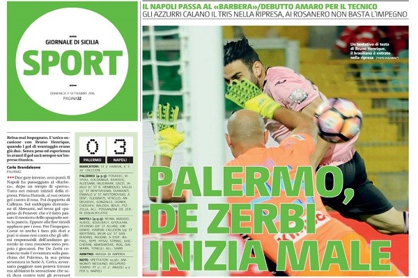 Dopo il match giocato ieri tra Palermo e Napoli e vinto dai partenopei, l’edizione odierna de “Il Giornale di Sicilia”...
