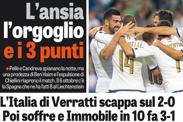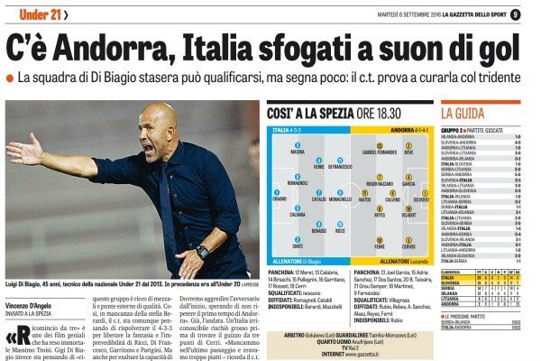 Queste le prime pagine dei principali quotidiani sportivi nazionali di oggi, martedì 6 settembre 2016.