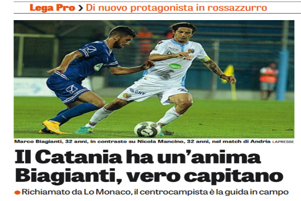 "Il capitano multiuso. Marco Biagianti, secondo qualcuno, doveva essere una semplice icona per traghettare il Catania dalla crisi da risultati,...