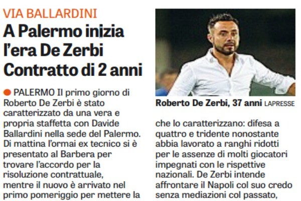 Gazzetta dello Sport: “A Palermo inizia l’era De Zerbi. Contratto di 2 anni”
