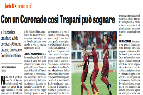 "Nelle mani di Igor Coronado. Se col Novara e con la Pro Vercelli per il Trapani sono arrivati due pareggi,...
