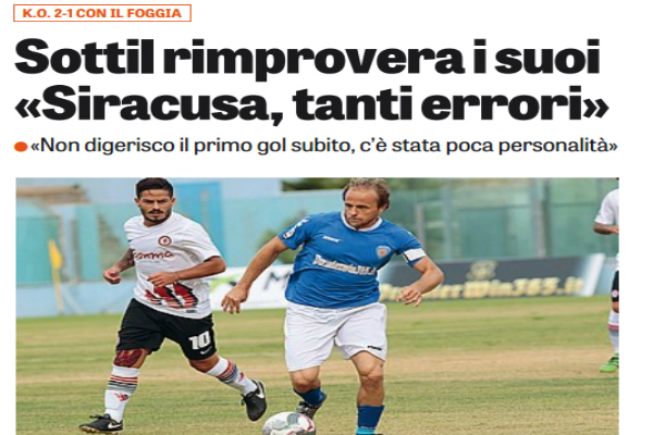 "A fine partita è amareggiato l’allenatore del Siracusa, Andrea Sottil, dopo la sconfitta subita ieri pomeriggio con il Foggia. «Purtroppo,...