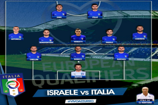 Israele-Italia, le formazioni ufficiali: Torna Bonucci, c’è Antonelli