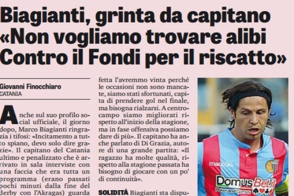 "Anche sul suo profilo social ufficiale, il giorno dopo, Marco Biagianti ringrazia i tifosi: «Incitamento a tutto spiano, devo solo...
