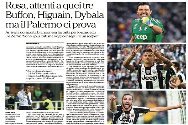 L'edizione odierna de "La Repubblica" analizza il match che quest'oggi andrà di scena al "Renzo Barbera" tra Palermo e Juventus....