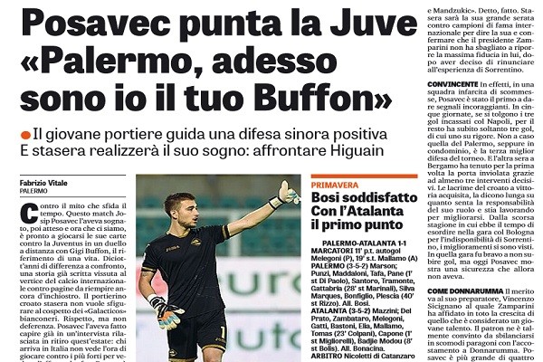L'edizione odierna de "La Gazzetta dello Sport" parla di Josip Posavec, che stasera si ritroverà davanti uno dei suoi miti,...