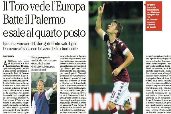 "ADEM Ljajic veste i panni di Superman e il Toro sente profumo d’Europa. I granata conquistano per 4-1 la terza...