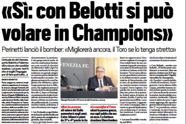 Intervistato da "Tuttosport",l'ex direttore sportivo del Palermo, Giorgio Perinetti ha parlato di Andrea Belotti: «Cessione del Gallo? Se fossi stato ancora...