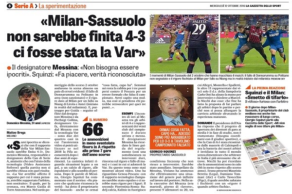 "«Sarei ipocrita se dicessi che con il supporto della Var MilanSassuolo sarebbe finita 4-3». Domenico Messina, responsabile e designatore della...