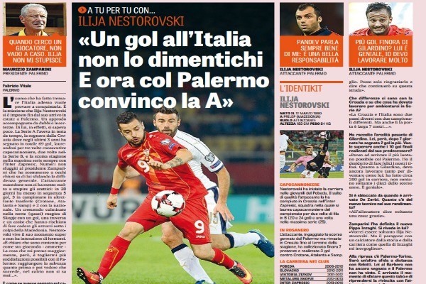 L'edizione odierna de "La Gazzetta dello Sport2 ha realizzato una lunga intervista a Iljia Nestorovski, eccone un estratto: "Zamparini l’ha...