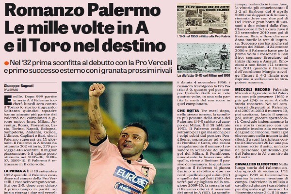 "E mille. Dopo 999 partite in serie A il Palermo toccherà lunedì sera contro il Torino lo storico traguardo. Soltanto...